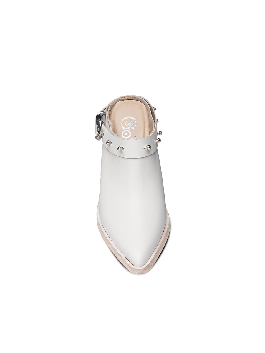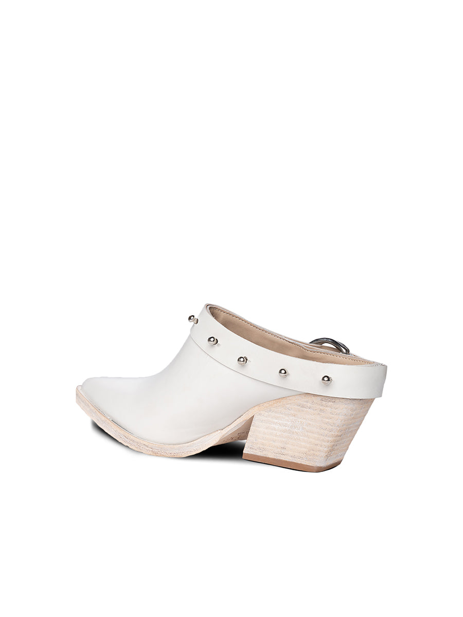 Western mule booties beautifully detailed with grommets across the buckle and studs. Head to the Honky Tonk in these comfortable and stylish booties.