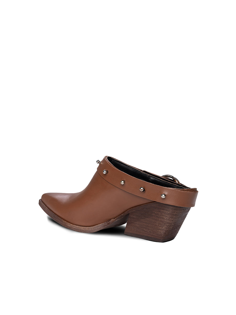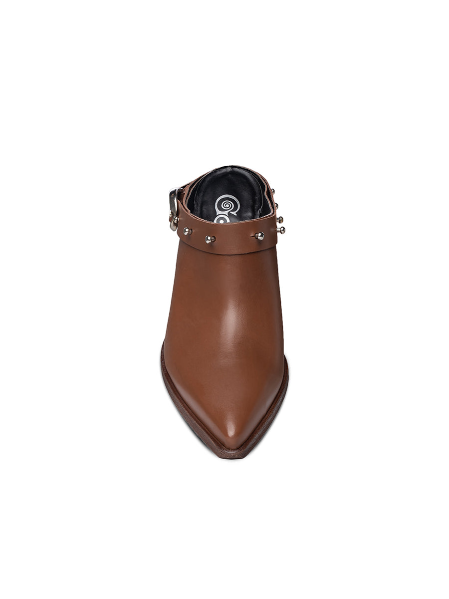 Western mule booties beautifully detailed with grommets across the buckle and studs. Head to the Honky Tonk in these comfortable and stylish booties.